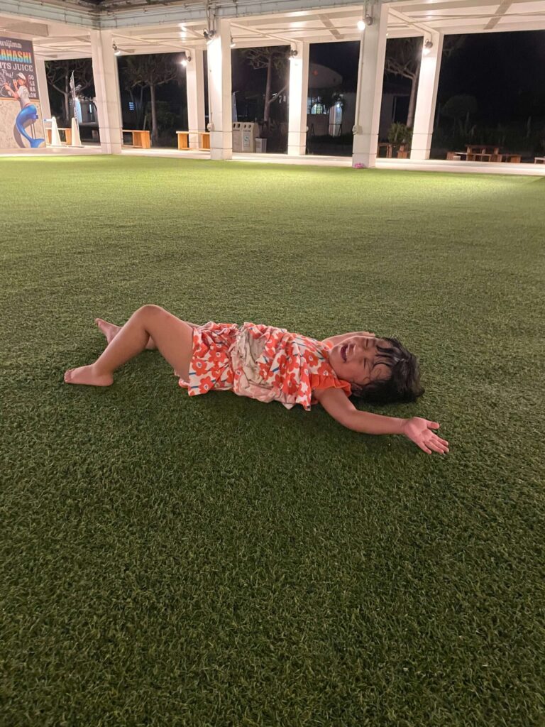 5つのお店があります。フードコートで買ったグルメをを片手にすぐ近くの古宇利ビーチで過ごしたり、目の前のふれあい広場には購入したグルメを食べるのに便利なテーブルや椅子がたくさん設置してありすぐ横には裸足で走れそうな芝生もあり休憩にピッタリです。夏のソラハシは夜も営業しているので我が家は夜の散歩でよく訪れています。2歳の次女ははしゃぎすぎて芝生で寝転んでしまいました。